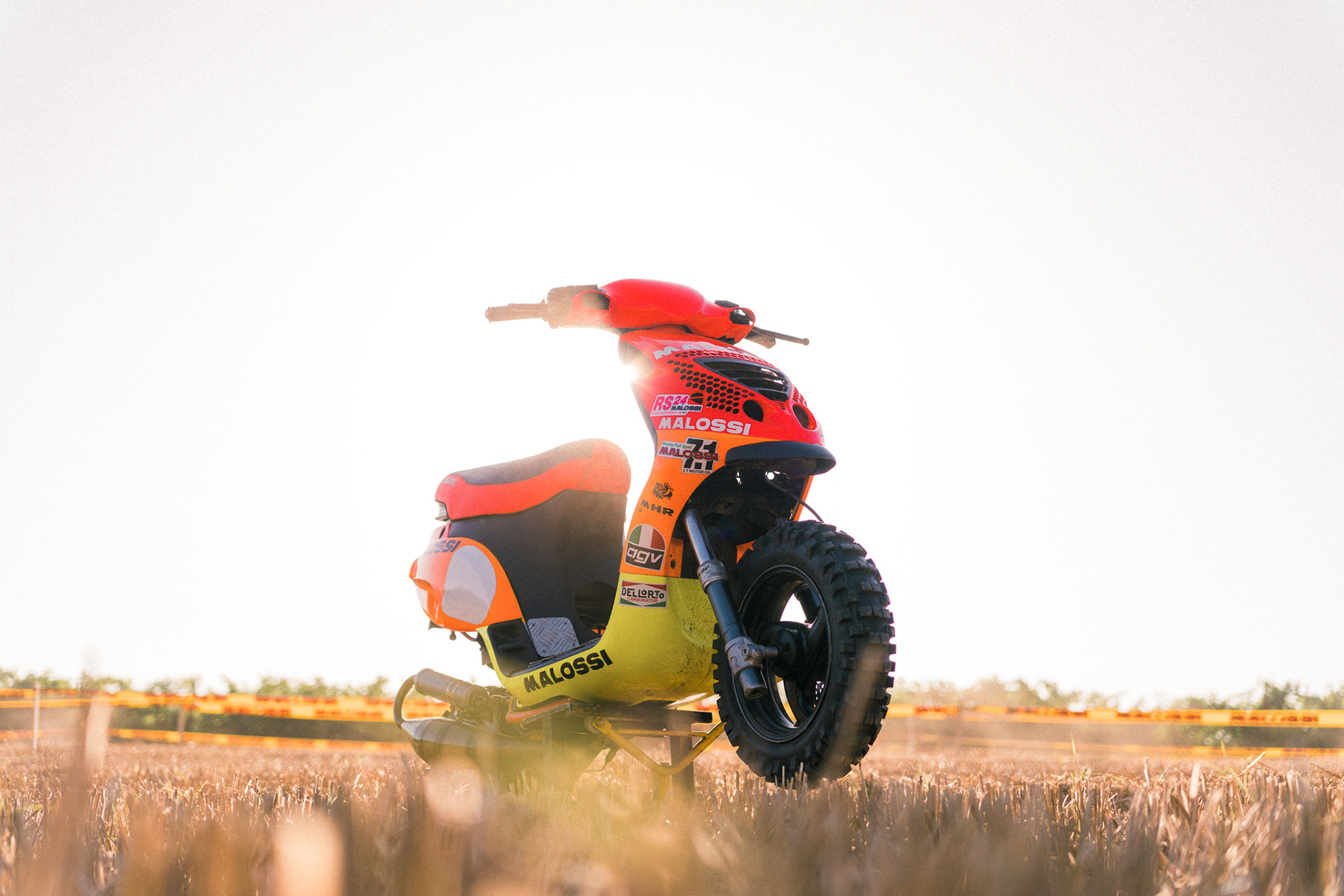 Uno scooter con quasi 30cv e motore completo rc one. L’ultimo set di carene e una piacevole spolverata di tutto quello che è stato storia e passione: lo scooter cross.